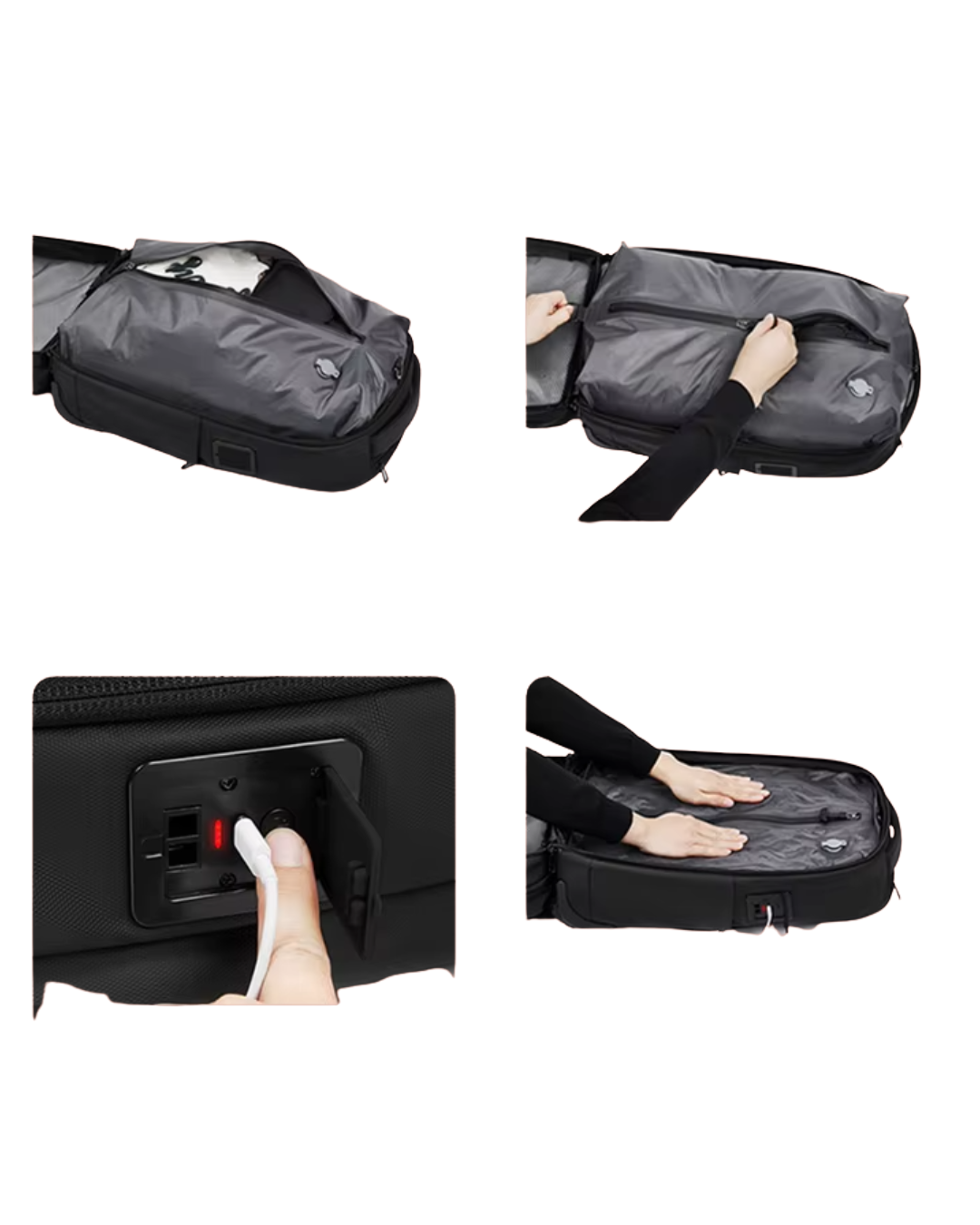 Easier to find clothes without opening up the bag fully and spilling the contents. Separate laptops, tablets and other electrical items from wet or damp clothing
